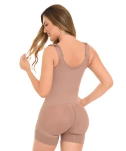 La faja postquirúrgica con mangas sisa y busto libre ofrece soporte postoperatorio, ajuste con tres niveles de broches y cierre perineal. Doble refuerzo abdominal, hasta rodilla y detalles de encaje. Fabricada con lycra forrada y microcápsulas viveltex protec. Moldea cintura, piernas y caderas, levanta glúteos y estiliza 360°. Costuras planas garantizan confort sin dañar piel. Adecuada como complemento postquirúrgico, postparto o para uso diario.